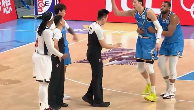 下半场易边再战,广东队继续迷失,北京一波7-4领先来到29分,7分28秒,场上出现火药味,周琦萨林杰争抢篮板被裁判判罚争球,周琦抱怨裁判领到技犯,周琦被迫下场冷静。