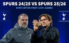 更差了?热刺英超与上赛季同期对比:积分-1、进球-5、丢球+3